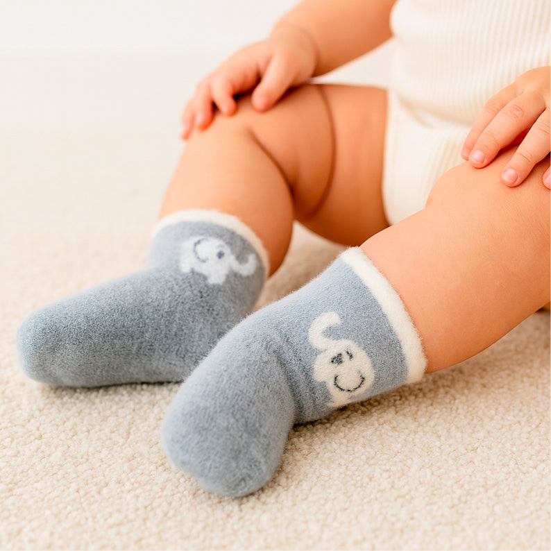 Medias en felpita. Tienen detalle de animalito. Tallas 6-48 meses.