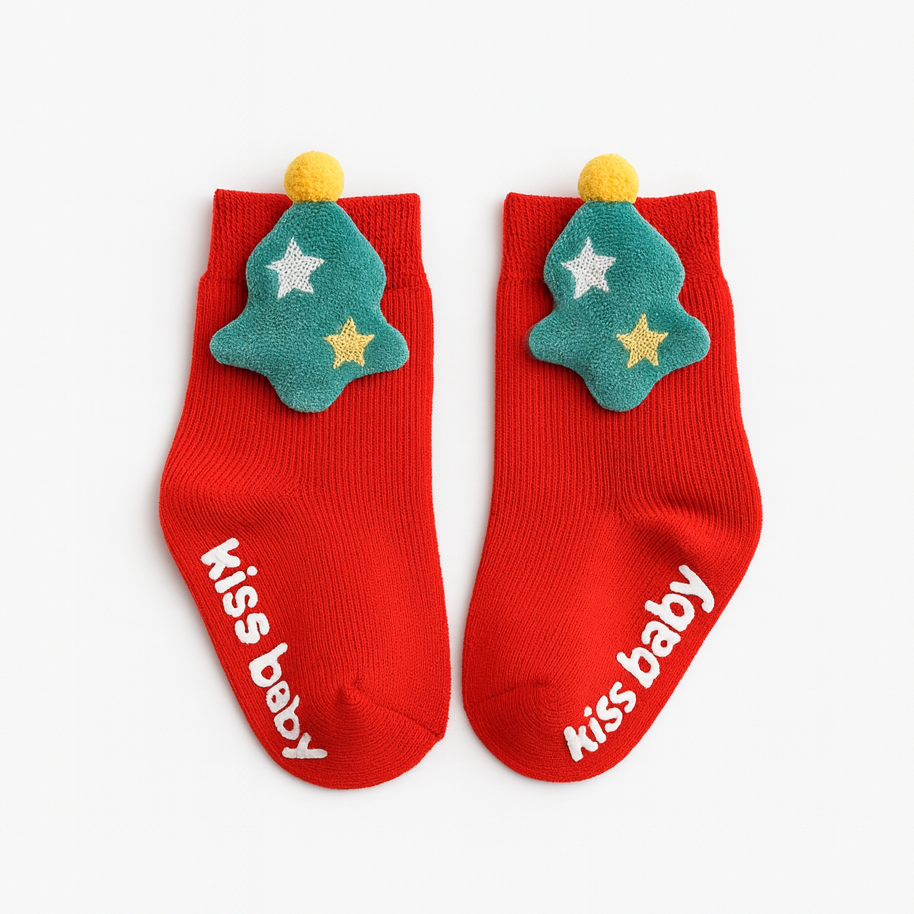 Zapatimedias largas de navidad con antideslizante 100% algodón afelpado. Con elástico suavecito para poner y sacar con facilidad.