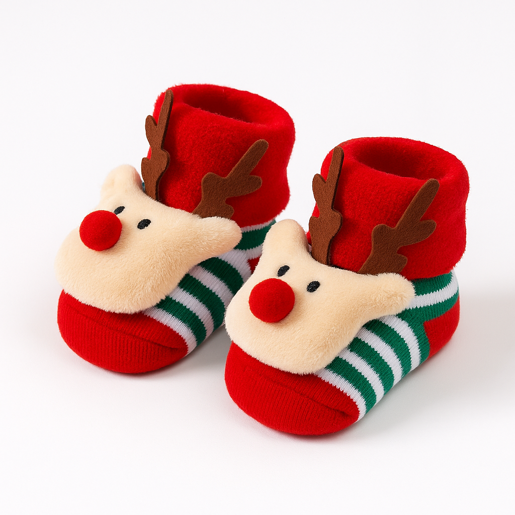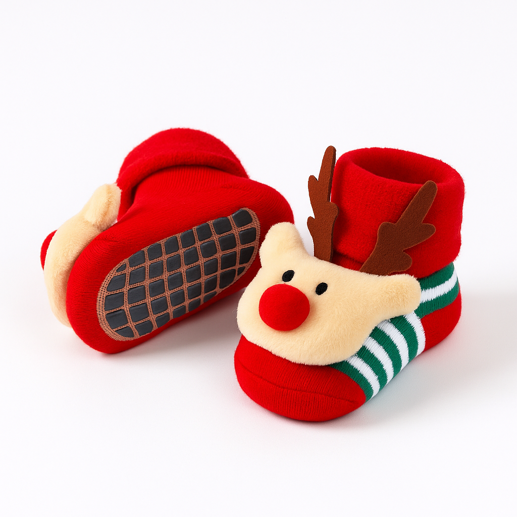 Zapatimedias largas de navidad con antideslizante 100% algodón afelpado. Con elástico suavecito para poner y sacar con facilidad.