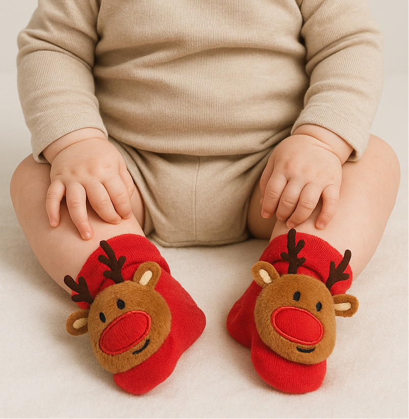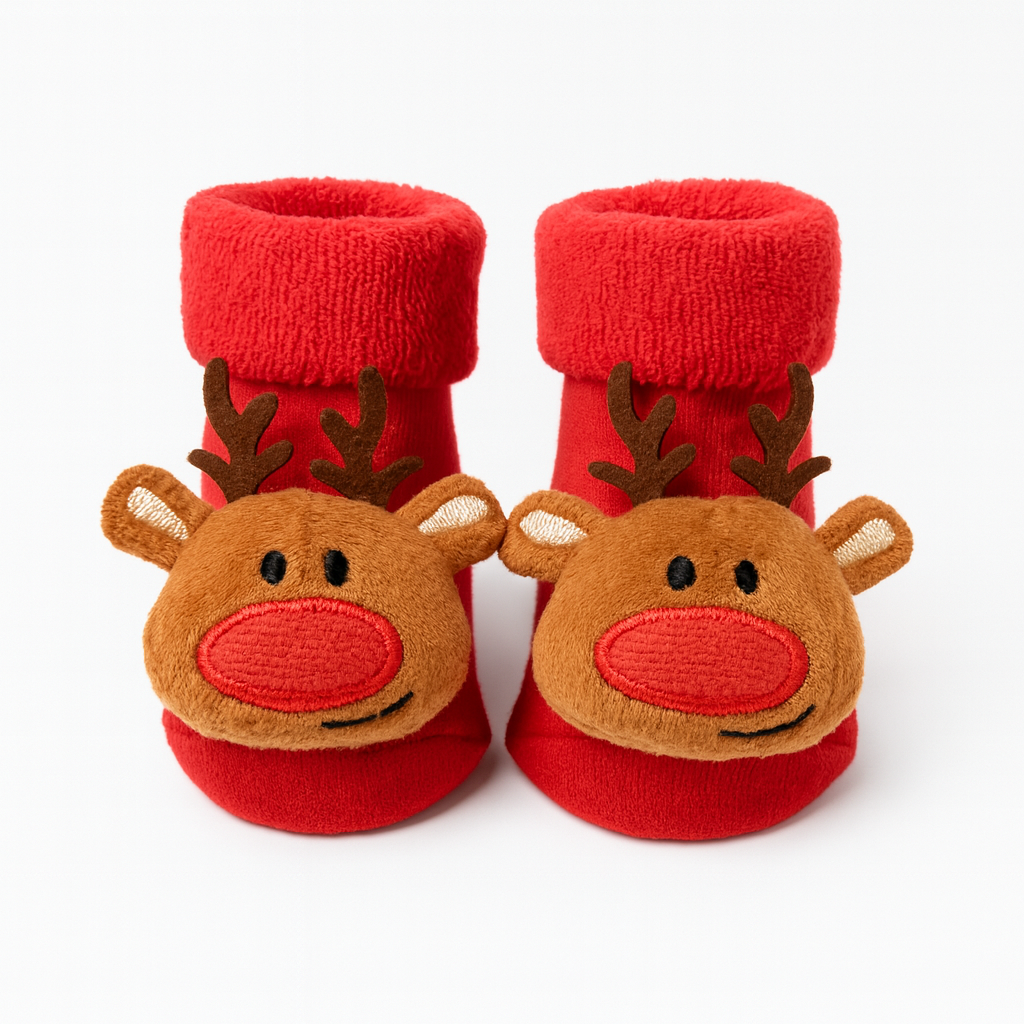 Zapatimedias largas de navidad con antideslizante 100% algodón afelpado. Con elástico suavecito para poner y sacar con facilidad.