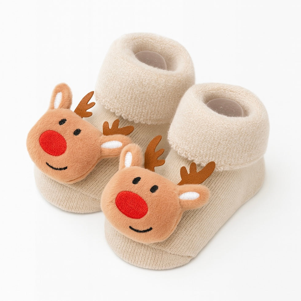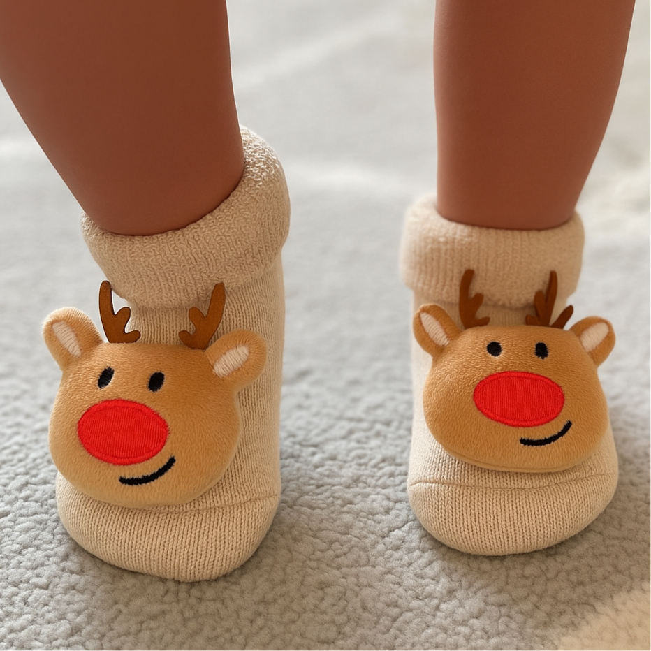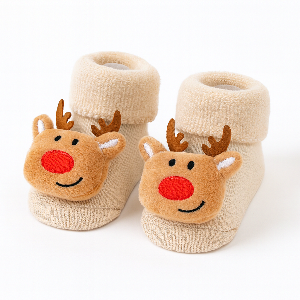 Zapatimedias largas de navidad con antideslizante 100% algodón afelpado. Con elástico suavecito para poner y sacar con facilidad.